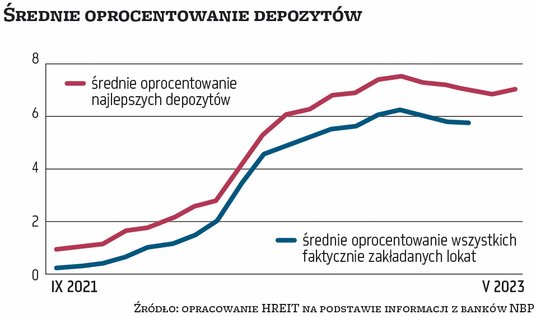 Niestety, banki nie podają, jaką część depozytów bieżących stanowią środki utrzymywane na rachunkach osobistych, a jaką pieniądze utrzymywane na kontach oszczędnościowych. Na pewno swoje zrobił rozziew między oprocentowaniami promocyjnymi a standardowymi. Natomiast za powrotem do kont i rachunków kosztem lokat terminowych stoi trwający od początku roku spadek oprocentowania, dający przy malejącej powoli dynamice inflacji realne straty niewiele mniejsze niż przy jej wyższych odczytach. Średnie oprocentowanie depozytów zawyżają promocyjne lokaty, przeznaczone na ogół dla nowych klientów, podczas gdy starzy utrzymują lokaty najczęściej gorzej oprocentowane.