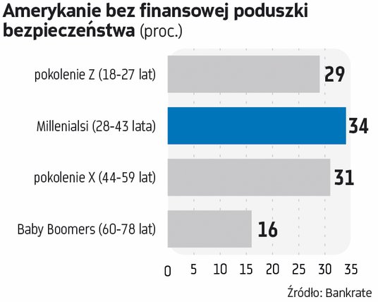 Utrzymanie oszczędności przez co najmniej trzy miesiące może pomóc przetrwać utratę pracy, poważny nieoczekiwany rachunek lub inny nagły wydatek. Jednak 27 proc. dorosłych Amerykanów nie ma żadnych oszczędności awaryjnych, co stanowi najwyższy odsetek od czasu zadania pytania przez Bankrate w 2020 r. 29 proc. osób ma pewne oszczędności, ale nie na tyle, aby pokryć trzymiesięczne wydatki. Odsetek ten nie zmienił się zbytnio od lat 2022 i 2023, kiedy to samo stwierdziło odpowiednio 28 proc. i 30 proc. osób. 44 proc. przedstawicieli pokolenia Z (18–27 lat) ma pewne oszczędności, ale mniejsze niż wystarczyłoby na pokrycie trzymiesięcznych wydatków, czyli najwięcej ze wszystkich pokoleń.