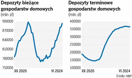 Pytanie, czy to oznaka zwiększonej skłonności do oszczędzania, czy przygotowywania do wzrostu wydatków. Bo czerwcowy wzrost oszczędności składał się ze zwiększonej o nieco ponad 11,5 mld zł wartości depozytów bieżących i zmniejszonego o ponad 700 mln zł salda depozytów terminowych. Ta tendencja jest widoczna od początku roku: depozyty bieżące wzrosły w ciągu sześciu miesięcy o 55,5 mld zł, a terminowe – zaledwie o 1,7 mld zł! Wygląda to na zwycięstwo banków, które wolą konta oszczędnościowe od lokat terminowych. Wbrew pozorom bowiem trwałość rachunków oszczędnościowych jest większa niż lokat, tzw. osad utrzymuje się na nich dłużej. Lokata terminowa może zostanie odnowiona, a może nie. A raczej nie, ze względu na to, że odnowienie oznacza standardowe, znacznie niższe od promocyjnego oprocentowanie. Dlatego też to konta oszczędnościowe są lepszą dla banków podstawą finansowania kredytów.