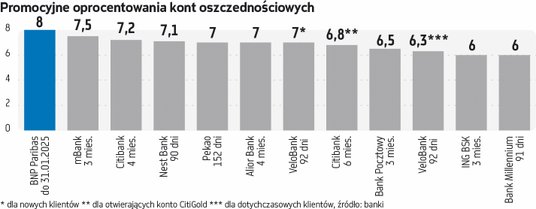 Bankom potrzeba klientów zaciągających kredyty, a szerzej – zostawiających swoje pieniądze nie za procent, ale na opłaty i prowizje. Promocje mają takich klientów przyciągać. I nie powinny być zbyt drogie – stąd konta oszczędnościowe z wynoszącym 25 tys. zł progiem, powyżej którego oprocentowanie jest znacznie niższe, czy dobrze oprocentowane lokaty terminowe z maksymalnym wkładem rzędu 25 czy 50 tys. zł. Przy takich ograniczeniach można sobie na wypłatę wyższych odsetek pozwolić. Skoro zatem pojawiła się już oferta na 8 proc., dlaczego niby konkurencja nie miałaby zaoferować więcej? ING BSK znany jest z tego, że preferuje swoje OKO ponad lokaty terminowe. Może to właśnie ten bank zdecyduje się porzucić 6 proc. na rzecz wyższej wypłaty?
