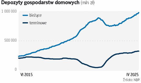 Warto przy tym zauważyć, że za cały wzrost depozytów gospodarstw domowych odpowiadało zwiększenie wartości depozytów bieżących – terminowe spadły o 124 mln zł.