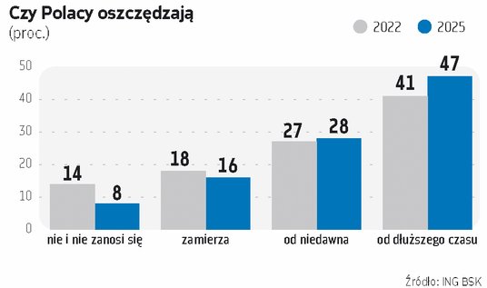 – Znaczny wzrost dochodów do dyspozycji Polaków w ostatnich trzech latach pozwolił zarówno na solidny wzrost konsumpcji, jak i oszczędności. Nastąpiło to po trudnym 2022 roku, gdy inflacja osiągnęła wynik dwucyfrowy, a stopa oszczędności spadła do zaledwie 0,2 proc. – mówi Rafał Benecki, główny ekonomista ING Banku Śląskiego. – Szacujemy, że w 2025 roku realne dochody Polaków rosły w tempie ponad 5 proc., a stopa oszczędzania wyniosła około 8 proc. i była najwyższa od pandemii w 2020 roku. Wówczas były to jednak oszczędności w dużej mierze wymuszone. Średnia z okresu od 2005 do 2024 roku wyniosła 5,1 proc. Wzrost oszczędności to także tendencja charakterystyczna dla starzejących się społeczeństw, a takim jest zdecydowanie Polska – podkreśla ekonomista.