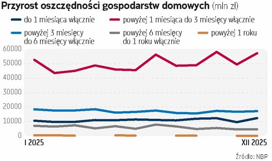 Polacy najchętniej wybierają krótkoterminowe depozyty trzymiesięczne. W ubiegłym roku miesięczny przyrost ich wartości nigdy nie spadł poniżej 40 mld zł, a w styczniu, lipcu, październiku i grudniu mocno przekraczał 50 mld zł. Na drugim biegunie znalazły się depozyty powyżej roku. W najlepszym dla nich miesiącu – lutym – wzrosły o 532 mln zł.
