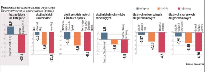 Listopad dla zdecydowanej większości uczestników funduszy inwestycyjnych był fatalnym miesiącem. O ile funduszom akcji można wybaczyć to potknięcie po miesiącach zwyżek, o tyle w przypadku portfeli dłużnych część przyniosła katastrofalne stopy zwrotu.