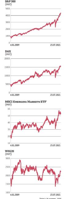 W warunkach braku bardziej istotnych wydarzeń i publikacji danych inwestorzy poddali się emocjom związanym z ekspansją wersji Delta koronawirusa. Poniedziałkowe tąpnięcie indeksów szybko pobudziło do zakupów akcji. Choć może to brzmieć nieco paradoksalnie, dynamiczna przecena przyczyniła się w większości przypadków do podjęcia próby zakończenia niedawnej spadkowej korekty. W przypadku głównych indeksów na Wall Street odrabianie strat udało się niemal w pełni. Powrót do punktu wyjścia, czyli stanu sprzed zaledwie kilku dni, gdy ustanawiane były historyczne rekordy, nie oznacza, że ryzyko zniknęło i można mieć pewność, że hossa będzie kontynuowana. Kolejna fala pandemii staje się coraz większym zagrożeniem, choć na razie większość rządów uspokaja, że może nie dojść do ponownego zamykania gospodarek i poważniejszych ograniczeń kontaktów społecznych. Jest więc nadzieja, że koniunktura nie ucierpi w takim stopniu, jak miało to miejsce w przypadku poprzednich fal epidemii. Czy rzeczywiście tak będzie, okaże się zapewne w ciągu kilku tygodni. Będzie to czas niepewności.