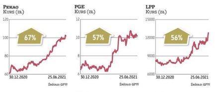 Pierwsze półrocze było także bardzo udane dla posiadaczy akcji PGE. Notowania wyraźnie odbiły za sprawą oczekiwań inwestorów związanych z planem wydzielenia aktywów węglowych, który zaczął nabierać coraz bardziej realnych kształtów. Dodatkowo początek tego roku okazał się bardzo udany dla energetycznego giganta pod względem wyników. W ostatnich tygodniach doszedł jednak polsko-czeski spór o kopalnię Turów, który może mieć poważne konsekwencje dla PGE, co wyraźnie ochłodziło nastawienie inwestorów do spółki.