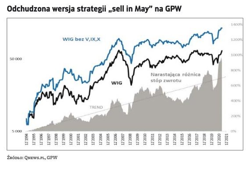 Co roku w mediach finansowych przewija się odwieczny giełdowy motyw: „sell in May and go away", co ma oznaczać, że w maju (na ogół zakłada się, że raczej na początku maja, choć są też inne wersje) należy sprzedać akcje i z gotówką w portfelu przeczekać aż do końca października (stąd pochodzi też inna nazwa tego zalecenia: „Halloween effect").