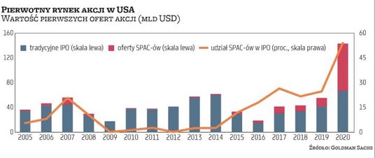 Tak w dużym uproszczeniu opisać można fenomen SPAC-ów (skrót od „special puropose acquisition company"), czyli akwizycyjnych spółek celowych. Moda na akcje takich podmiotów, powoływanych już nawet przez niezwiązanych z rynkiem kapitałowym celebrytów, nosi znamiona bańki spekulacyjnej. Dochodzenie, które wszczęła niedawno w tej sprawie amerykańska Komisja ds. Papierów Wartościowych i Giełd (SEC), sprzyja podejrzeniom, że ten segment rynku rozgrzał się zanadto. Ale pochód SPAC-ów można też postrzegać jako element rewolty inwestorów indywidualnych przeciwko gigantom Wall Street okopanym na przeregulowanym rynku, której innym przejawem była głośna na początku tego roku akcja forumowiczów z WallStreetBets. Patrząc z tej perspektywy, SPAC-e mogą zmienić rynek na lepsze. O ile ich popularność nie minie tak szybko, jak się pojawiła.