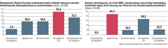 Przeciwko temu postulatowi opowiedziało się 21 uczestników (55,3 proc.) szóstej rundy naszego panelu ekonomistów, w tym dziewięciu zdecydowanie przeciwko. Wielu z nich podkreśla, że już teraz – zgodnie z ustawą o NBP – polski bank centralny ma za zadanie wspieranie polityki gospodarczej rządu, o ile nie ogranicza to podstawowego celu: utrzymywania stabilnego poziomu cen. Ten zapis umożliwia wspieranie dekarbonizacji gospodarki oraz innych celów polityki gospodarczej rządu. Wygląda na to, że rolę NBP tak samo postrzega jego prezes prof. Adam Glapiński, który zapowiedział niedawno, że instytucja ta będzie pomagała sfinansować budowę w Polsce elektrowni atomowych. – Dodatkowo NBP ma wśród zadań „działanie na rzecz stabilności systemu finansowego" oraz „działanie na rzecz wyeliminowania lub ograniczania ryzyka systemowego" i także z tymi zadaniami można powiązać dekarbonizację gospodarki – zauważa prof. dr hab. Małgorzata Iwanicz-Drozdowska, kierownik Katedry Systemu Finansowego w SGH.