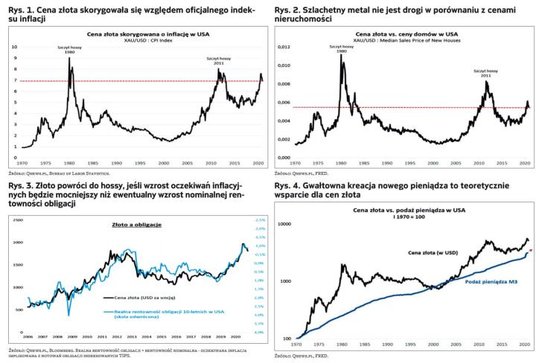 Co można powiedzieć o złocie z fundamentalnego punktu widzenia? Zacznijmy od zaktualizowania wykresu, który budził nasze największe obawy w analizie z początku sierpnia („Złoto – hossa zaawansowana, ale czy już wyczerpana?"). Pokazaliśmy na nim realną cenę złota (w USD), czyli innymi słowy cenę szlachetnego metalu skorygowaną o indeks inflacji w USA.