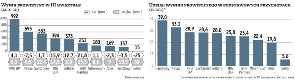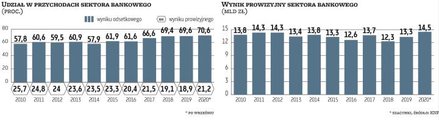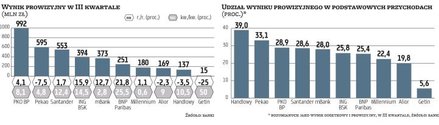 Tegoroczne odbicie tego wyniku po kilku chudych latach jest więc pozytywnym zaskoczeniem. Wzrost w ujęciu rok do roku skłania do optymizmu, że będzie to trwały efekt, dzięki m.in. wprowadzanym systematycznie podwyżkom w tabeli opłat i prowizji. Trudno jednak o hurraoptymizm – w całym roku rezultat ten może wynieść 14,5 mld zł (byłby to wzrost o prawie 9 proc.), ale nie jest to przełomowa poprawa – jeszcze w latach 2011 i 2012 był niewiele niższy i wyniósł po 14,3 mld zł. Poza tym trzeba pamiętać o udziale tego rezultatu w przychodach sektora: ubytek wyniku odsetkowego po cięciu stóp w skali roku może sięgnąć 6 mld zł przy wzroście wyniku prowizyjnego „tylko" o 1,2 mld zł.