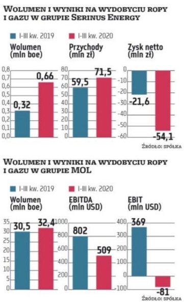O spadającej roli biznesu poszukiwań i wydobycia w wynikach finansowych spółek mogą m.in. świadczyć wyniki publikowane ostatnio przez grupę PGNiG. Po trzech kwartałach koncern zanotował na tej działalności jedynie 7 proc. ogółem wypracowanego zysku EBITDA. W tym samym czasie 2019 r. jego udział sięgał 67 proc. Drastyczny spadek zysku tylko częściowo został wyhamowany przez wzrost wydobycia. Po trzech kwartałach firma pozyskała łącznie 28,2 mln boe (baryłki ekwiwalentu ropy) w Polsce, Norwegii i Pakistanie. W tym czasie zainwestowała w poszukiwania i wydobycie 1,77 mld zł. Spółka nie ujawnia, jakie nakłady zamierza ponieść na ten cel w kolejnych okresach. Wiadomo za to, że w następnych kwartałach PGNiG zamierza zwiększać wydobycie. Spółka planuje m.in. prace związane z poszukiwaniem i zagospodarowaniem złóż w zachodniej i południowo-wschodniej części naszego kraju. W Pakistanie planowane są nowe odwierty na koncesji Kirthar. PGNiG liczy też na sukces prac poszukiwawczych w Zjednoczonych Emiratach Arabskich, gdzie ostatnio pozyskano dane sejsmiczne. „Interpretacja pozwoli oszacować potencjał zasobowy obszaru koncesji oraz dać odpowiedź na temat zasadności i lokalizacji wiercenia otworu poszukiwawczego" – informuje biuro public relations PGNiG.