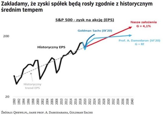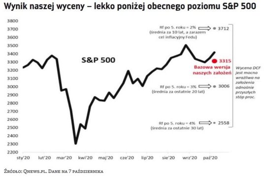 Reasumując, model DCF z pewnością nie jest przysłowiowym „świętym Graalem", który pozwalałby perfekcyjnie obiektywnie wyceniać akcje. Mimo formalnego, matematycznego ustrukturyzowania model wymaga całego szeregu raczej subiektywnych założeń. W naszych kalkulacjach staraliśmy się przynajmniej o zachowanie przejrzystości tych założeń i prognoz. Wynik może być dość zaskakujący, bo sugeruje, że S&P 500 wcale nie jest tak przewartościowany, jak wydawałoby się np. na podstawie raczej wysokich wskaźników P/E – głównie dzięki niskim stopom procentowym. Do omówionego modelu będziemy zapewne odwoływać się w przyszłości.