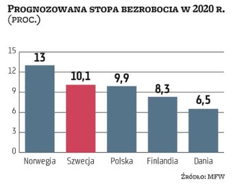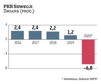 O ile Brytyjczycy czy Francuzi mogą z zazdrością patrzeć na Szwecję jak na kraj, który lepiej poradził sobie z pandemią, o tyle rządy państw skandynawskich myślą o utrzymaniu na dłużej ograniczeń w przyjmowaniu podróżnych ze Szwecji. Może jednak Szwecja uratowała w ten sposób swoją gospodarkę przed głęboką recesją? Na pewno liberalne podejście do walki z pandemią pomogło złagodzić szok gospodarczy, ale trudno uznać Szwecję za „zieloną wyspę" wolną od kryzysu. Międzynarodowy Fundusz Walutowy prognozuje, że PKB Szwecji spadnie w tym roku o 6,8 proc., a Komisja Europejska spodziewa się spadku o 6,1 proc. Magdalena Andersson, szwedzka minister finansów, przedstawiła prognozy mówiące o skurczeniu się gospodarki w tym roku o 7 proc. Spadek PKB Szwecji może być więc nieco większy niż w krajach sąsiednich, w których wdrożono ostrzejsze środki zapobiegające pandemii.
