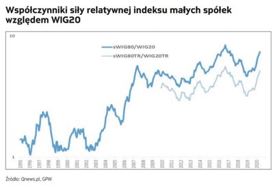 Nasz wykres jednoznacznie przypomina, że w długim horyzoncie czasowym akcje małych spółek radzą sobie lepiej niż WIG20, nawet uwzględniając takie okresy przejściowej słabości jak ten z lat 20182019 (notabene takie okresy są dobrą okazją do akumulacji). Teza ta, potwierdzona praktyką, wpisuje się w opisany w literaturze zachodniej „efekt małych spółek", a także rozważania dotyczące naszego lokalnego rynku, na których największe firmy są często kontrolowane przez państwo, a nie dążący do maksymalizacji zysków kapitał prywatny.