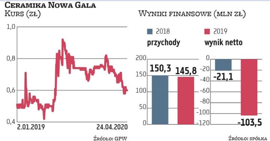 – Kluczowe znaczenie dla przyszłości naszej spółki, podobnie jak innych firm z naszej branży, będzie mieć postawa instytucji finansowych. Na razie banki wyraziły zgodę na przejściowe zawieszenie spłat części rat kredytów, zapadających w ciągu najbliższych miesięcy, jednak bez zmiany ostatecznych terminów spłaty – twierdzi Bąk. Dodaje, że jeśli recesja będzie negatywnie wpływać na sytuację banków, może to usztywnić ich stanowisko. Ceramika Nowa Gala nie widzi dziś żadnych symptomów sezonowego ożywienia w branży. Co gorsza – według spółki – ich nie będzie. – Wielu potencjalnych klientów z uwagi na to, że już teraz zarabia mniej na skutek pandemii, mniej również wydaje i ogranicza zakupy na materiały budowlane, pomimo rozpoczętego sezonu wiosennego – uważa Bąk.