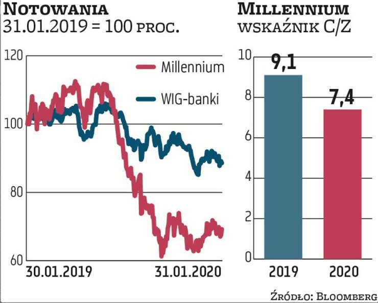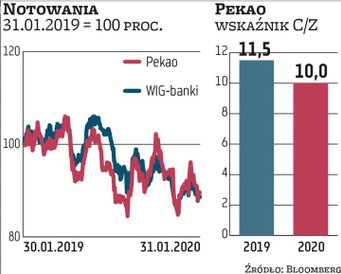 Notowania Pekao rozczarowują od dawna: stopa zwrotu za 12 miesięcy jest podobna jak indeksu WIG-banki, mimo że spółka ta ma śladowy udział frankowych hipotek w portfelu. Może się tak dziać nie tylko ze względu na przeciętne wyniki finansowe Pekao w 2019 r. (te biznesowe były dobre), ale też na to, że bank zaczyna wyrastać na faworyta do przejęcia mBanku. – Musi wyjaśnić się sprawa tej potencjalnej transakcji: czy będzie, a jeśli tak, to w jakiej konfiguracji i z jaką emisją akcji. Dopóki to się nie wyklaruje, nie oczekuję istotnego odbicia notowań Pekao. Jeśli do transakcji nie dojdzie, widzę potencjał do wzrostu notowań. Silną stroną Pekao w tym roku powinna być poprawa wyników, może się wyróżnić na tle sektora. Bank nie zanotuje już teraz kosztów, jak w ubiegłym roku, ale efekty restrukturyzacji – ocenia Łukasz Jańczak, analityk Ipopemy. Specjaliści DM BDM prognozują, że zysk wzrośnie aż o 17 proc., co będzie możliwe dzięki wzrostowi przychodów i spadkowi kosztów. Oceniają, że obecna wycena (C/Z 10,8, C/WK 1,13) jest atrakcyjna. Z zysku za 2019 r. oczekują najwyższej w sektorze stopy dywidendy (5,9 proc.).