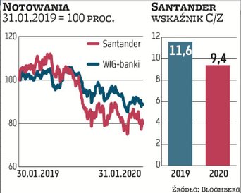 Rok 2019 r. był trudny dla Santandera ze względu na nie tak udaną, jak oczekiwano, fuzję z częścią podstawową Deutsche Banku Polska, która była w dodatku mocno angażująca i przełożyła się na wolniejszy wzrost kredytów. Bank został mocno przeceniony (roczna stopa zwrotu -19 proc.) nie tylko ze względu na nie najlepsze wyniki, ale też z powodu franków. Stawia na niego Andrzej Powierża, analityk DM Citi Handlowego. – Santander podoba mi się na zasadzie wykluczenia innych banków. Notowania frankowych banków mogą być mocno zmienne, trudno je przewidzieć w rocznej perspektywie. Ze względu na większe ryzyko generalnie unikam tych banków. Podobnie jak państwowych, chociażby ze względu na obawy, czy profesjonalizm w tych spółkach będzie utrzymany biorąc pod uwagę liczne zmiany w zarządach innych państwowych firm. Preferuję Santandera, który ma umiarkowaną ekspozycję na franki. Jego największym problemem jest spora ekspozycja na kredyty konsumenckie, więc powstaje pytanie, jakie ostatecznie będą koszty zwrotów prowizji i czy uda się zmienić strukturę cen tych kredytów, aby utrzymać rentowność nowej produkcji – dodaje.