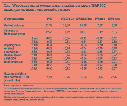 Na temat tego, czy będące liderem globalnej hossy amerykańskie akcje są drogie czy nie, trwa odwieczna debata. Zarówno pesymiści, jak i optymiści posiłkują się rozmaitymi wskaźnikami, by udowodnić swoje racje. Starając się uniknąć błędu, jakim jest dopasowywanie danych do założonej z góry tezy, zerknijmy na wybrane współczynniki wycen. Ich cechą wspólną jest to, że bazują na rachunku zysków i strat (pominiemy więc tym razem np. współczynnik ceny do wartości księgowej, o którym często wspominaliśmy). Odwołują się jednak do różnych pozycji w ramach tego rachunku.