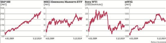 Co prawda do czwartku S&P 500 zniżkował jedynie o 0,7 proc., ale był to największy tygodniowy spadek tego indeksu od końca września. Trwający od siedmiu tygodni rajd został więc przerwany i to akurat w momencie, gdy można było spodziewać się rajdu Świętego Mikołaja. Po drugie, we wtorek w najgorszym momencie S&P 500 tracił ponad 2 proc., spadając wyraźnie poniżej 3100 pkt i cofając się do poziomu z pierwszych dni listopada. Pierwsze cztery sesje minionego tygodnia przyniosły też spadek Dow Jonesa o 1,3 proc. oraz sięgającą 1,1 proc. zniżkę Nasdaq Composite. Nastroje poprawiły się nieco w środę i w czwartek, gdy Donald Trump próbował łagodzić ton swoich wcześniejszych wypowiedzi. Jakiegoś rozstrzygnięcia można się spodziewać w okolicach 15 grudnia, czyli dnia, w którym planowano zawarcie wstępnej umowy między USA a Chinami. Chiny wyraźnie oczekują zmniejszenia amerykańskiej presji celnej.