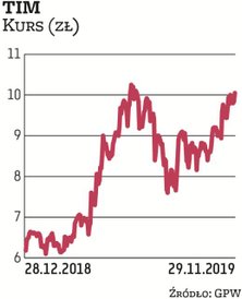 Pozytywny trend w wynikach kontynuuje TIM. Zanotował rekordowy pod względem obrotów zarówno III kwartał, jak i całe dziewięć miesięcy 2019 r. – Choć koniunktura na rynku zaczyna się pogarszać, TIM zdołał w III kwartale zaskoczyć bardzo dobrymi wynikami finansowymi. Tym razem za wysoką dynamiką wzrostów stoi część logistyczna (3LP), wyniki biznesu handlowego pozostają na stabilnym poziomie w relacji do poprzednich kwartałów. Imponujący CF operacyjny (wzrost o 35 mln zł) pozwolił odbudować pozycję gotówkową – zauważa Michał Sztabler, analityk Noble Securities. – Po trzech kwartałach TIM zrealizował ok. 75 proc. prognozowanych przez nas przychodów na 2019 r., jednak dzięki wyższej zyskowności udało się wykonać ponad 90 proc. planowanych zysków – dodaje.