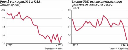 Powód do niepokoju daje też majowy odczyt indeksu PMI mierzącego koniunkturę w amerykańskich przemyśle. Wskaźnik ten spadł z 52,6 pkt w kwietniu do 50,5 pkt w maju, czyli najniższego poziomu od września 2009 r. Amerykański przemysł znalazł się więc na krawędzi stagnacji. – Wzrost zamówień sprzed kilku miesięcy zamienił się teraz w ich spadek. Zdarzyło się to po raz pierwszy, odkąd 10 lat temu zaczęto zbierać te dane – twierdzi Chris Williamson, główny ekonomista IHS Markit, firmy przeprowadzającej badania PMI. James Bullard, szef oddziału Rezerwy Federalnej w St. Louis, powiedział zaś w poniedziałek, że wkrótce mogą pojawić się powody, by obniżać główne stopy procentowe. – Wkrótce może być uzasadnione cięcie stóp – powiedział Bullard. Wyjaśnił, że zwiększona niepewność w światowej gospodarce, związana m.in. z wojnami handlowymi, może negatywnie wpływać na sytuację gospodarczą w USA.