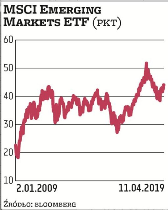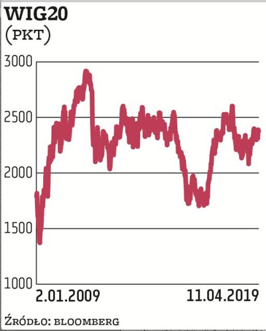 Unia Europejska po raz kolejny wykazała anielską cierpliwość, przedłużając do końca października termin opuszczenia Wspólnoty przez Wielką Brytanię, trochę nie mając wyjścia, a może licząc po cichu, że ostatecznie do brexitu nie dojdzie. O ile w przypadku polityków czekanie niewiele kosztuje, o tyle dla przedsiębiorców, a więc i gospodarki, koszty mogą być całkiem spore. Przedłużanie okresu niepewności nie sprzyja podejmowaniu decyzji biznesowych. Tym bardziej że na to nakłada się wiele innych niewiadomych, jak choćby kwestia perspektyw globalnej gospodarki czy losów porozumienia między Chinami a Stanami Zjednoczonymi. Choć wiadomo, że gospodarka światowa spowalnia, to jednak zagadką jest skala i czas trwania tego procesu, a to także przecież bardzo istotne przesłanki decyzyjne. Do wyjaśnienia sytuacji nie przyczyniła się też publikacja protokołu z poprzedniego posiedzenia Fedu. Wynika z niego, że część przedstawicieli komitetu otwartego rynku nie wyklucza obniżki stóp procentowych, a część mogłaby być skłonna do ich podwyższenia. Na tę pierwszą opcję wciąż naciska prezydencka administracja. Nic więc dziwnego, że w tych warunkach także inwestorzy mają kłopot z podejmowaniem bardziej stanowczych decyzji rynkowych. Na Wall Street dochodzi jeszcze oczekiwanie na rozpoczynający się sezon publikacji wyników finansowych. S&P 500 w trakcie pierwszych czterech sesji minionego tygodnia zniżkował o 0,2 proc., nie mając odwagi ponowić ataku na 2900 punktów. Dow Jones stracił 1,1 proc., sygnalizując gotowość wejścia w fazę korekty. Na naszym kontynencie niewielki, sięgający 0,6 proc., spadek zanotował wskaźnik we Frankfurcie, oddalając się od niedawno pokonanego poziomu 12 tys. punktów. O 0,8 proc. w dół poszedł indeks rynków wschodzących. ETF na MSCI Emerging Markets zdołał się jednak utrzymać powyżej 44 punktów. Korekta zawitała na parkiet chiński. Shanghai Composite zniżkował do czwartku o 1,7 proc., powracając poniżej 3200 punktów. W ostatnich tygodniach tej skali korekty widzieliśmy już dwukrotnie i za każdym razem nie oznaczały one zakończenia trwającego od początku roku rajdu indeksu, zyskującego już w tym czasie prawie 30 proc.