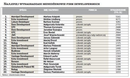 Statusem menedżera milionera mogą poszczycić się 22 osoby wchodzące w skład zarządów notowanych na warszawskiej giełdzie deweloperów mieszkaniowych i komercyjnych.
