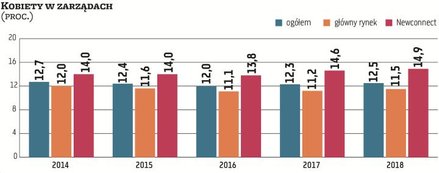 W minionym roku na rynku regulowanym giełdy zadebiutowało siedem spółek. Jednocześnie główni akcjonariusze wycofali z obrotu akcje 25 emitentów. Z punktu widzenia zmian w portfelach głównych indeksów giełdowych miało miejsce kilkanaście awansów i spadków. W przypadku indeksu WIG20 jedynie w marcu doszło do jednej zmiany. Natomiast w indeksie giełdowych średniaków doszło w całym roku do pięciu zmian. Najwięcej przetasowań miało miejsce w przypadku sWIG80, w tym przypadku pojawiło się 16 nowych spółek. To wszystko przełożyło się również na zmiany struktury kobiet oraz mężczyzn w zarządach i radach nadzorczych.