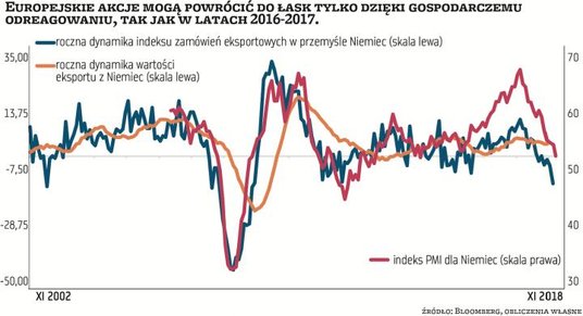 Dlatego europejscy inwestorzy powinni raczej trzymać kciuki za powodzenie podjętej przez rząd w Pekinie próby rozkręcenia chińskiej gospodarki. Jeśli zaskoczy silnik Państwa Środka, to ruszy również europejski eksport, a co za tym idzie, przemysł Starego Kontynentu. Na razie, niedoważając europejskie akcje i uznając je za najsłabsze ogniwo w inwestycyjnym łańcuchu, inwestorzy nie wierzą w pozytywne rozstrzygnięcie i skupiają się raczej na zatrważająco słabych danych napływających z przemysłu strefy euro.