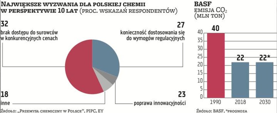 Spółki chemiczne działające w Unii Europejskiej podlegają coraz bardziej restrykcyjnym wymaganiom związanym z ochroną środowiska. Dlatego od lat polskie firmy wydają znaczne środki na dostosowanie instalacji do unijnych regulacji. Kolejnym wyzwaniem, które stoi przed branżą, jest próba ograniczenia emisji dwutlenku węgla, co ma pomóc w osiągnięciu przez UE ambitnych celów klimatycznych. Nie jest to jednak proste. – Chemia jest tworzona na bazie związków węgla i dlatego nie da się jej zdekarbonizować. To główny kompozyt chemikaliów i surowców, takich jak nafta czy gaz ziemny. Jedyne, co możemy zrobić, to zarządzać nim w najlepszy sposób – podkreślił Martin Brudermüller, prezes BASF, ogłaszając w styczniu strategię zarządzania emisją CO2.