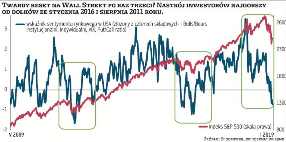 Ostatecznie S&P 500 zakończył 2018 r. ponad 6-proc. stratą, czyli pierwszą tak dużą przeceną od 2008 r. Co ważne, stało się to w roku, w którym zysk na akcję spółek wchodzących w skład tego indeksu wzrósł o ponad 20 proc. (kilkanaście procent bez efektu podatkowego), a ich przychody zwiększyły się o 10 proc. Po raz ostatni z taką rozbieżnością między fundamentami a rynkiem mieliśmy do czynienia w 2000 r., który zakończył hossę lat 90. Nic więc dziwnego, że inwestorzy zagłosowali nogami i wycofali w 2018 r. prawie 100 mld dolarów z funduszy amerykańskich akcji, z tego ponad połowę w IV kwartale. W ciągu ostatnich sześciu tygodni ubiegłego roku ze wszystkich funduszy akcyjnych na świecie wypłacono rekordowe 84 mld dolarów (poprzedni rekord ustanowiono w 2008 r.).