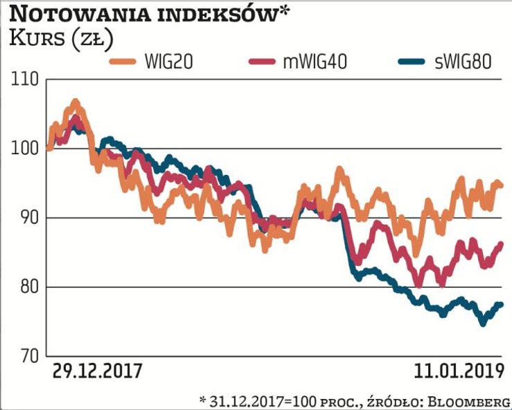Rok 2018 na GPW był bardzo słaby. Gromadzący największe spółki i uzależniony od nastrojów inwestorów zagranicznych WIG20 stracił 7,5 proc. a jeszcze większe straty poniosły indeksy średnich i małych spółek – mWIG spadł o ponad 19 proc. zaś sWIG o blisko 28 proc. Patrząc na te dane, można pomyśleć, że musiał być to trudny rok dla polskiej gospodarki. Było wręcz odwrotnie, co rodzi obawy, że rok 2019, który nie będzie tak gospodarczo dobry, nie przyniesie poprawy na GPW.