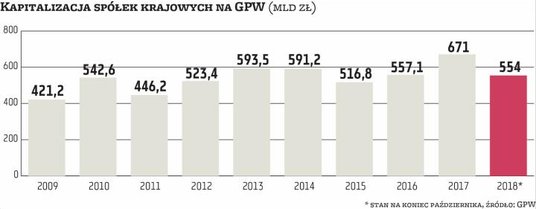 Oznaki słabości naszego rynku widać właściwie na każdym kroku i w każdym obszarze. Gdyby kłopoty dotyczyły tylko części rynku, można byłoby jeszcze wierzyć, że lada moment znowu wyjdziemy na prostą. Niestety w obecnych warunkach wiara w poprawę przegrywa coraz częściej ze zwątpieniem i pogłębiającym się marazmem. Patrząc na to, co się dzieje, trudno być optymistą. Indeksy giełdowe zachowują się tak, jak się zachowują. Im można jeszcze przypisać, że są pod wpływem globalnych nastrojów. Niestety im głębiej będziemy zaglądać w nasz rynek, tym coraz boleśniej będziemy się przekonywać, że problemy tak naprawdę nie są globalne, ale lokalne. Brakuje towaru, kapitału i zaufania. Ze świecą szukać można spółek, które marzą dziś o tym, aby zadebiutować na giełdzie. To oczywiście też pochodna wycen, jakie mamy na rynku, ale faktem jest też, że giełda dla przedsiębiorców kojarzy się coraz częściej z obciążeniami, a nie korzyściami. Potwierdzać to mogą dwie liczby. Od początku roku na głównym parkiecie zadebiutowało siedem spółek i wygląda na to, że pod tym względem czeka nas najgorszy okres od 2003 r. Druga statystyka to liczba wycofanych spółek z parkietu. Na razie mamy ich 19. Do zeszłorocznego rekordu (20) jest więc już naprawdę blisko. Towar, który nadal mamy na rynku, też nie jest zbytnio rozchwytywany. We wrześniu co prawda padł sesyjny rekord obrotów na GPW przy okazji awansu do grona rynków rozwiniętych (wynosi on obecnie 5,4 mld zł), ale należy to raczej uznać za incydentalne zdarzenie. Średnie dzienne obroty na GPW oscylują obecnie w granicach 700 mln zł, co dla rynku rozwiniętego raczej już nie jest powodem do dumy.
