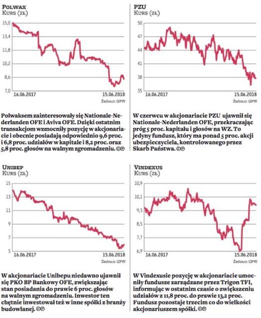 Z kolei PKO BP Bankowy OFE upodobał sobie spółki z branży budowlanej, pojawiając się w akcjonariacie Unibepu oraz zwiększając stan posiadania w Elektrobudowie i Erbudzie.