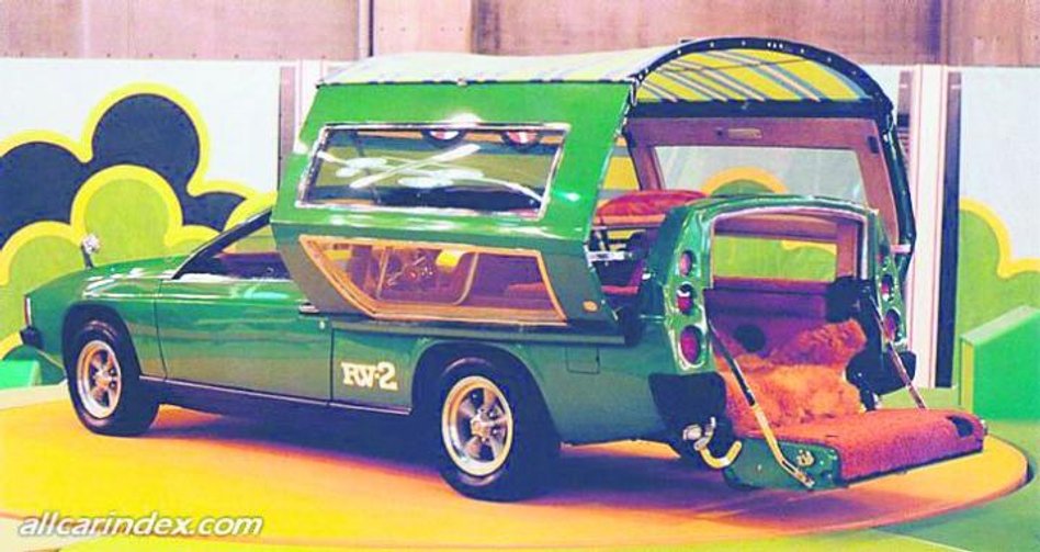 Dostrzeżono w tym aucie duży potencjał, bo też projekt był bardzo postępowy. RV-2 został wyposażony w prostokątne reflektory, a potężna krata wlotu powietrza rozdzielała przedni zderzak na dwie części. Samochód niewątpliwie zwracał uwagę swoją nietuzinkową stylistyką, ale nie ona była jego głównym atutem. Najistotniejszą cechą charakterystyczną była przestrzeń bagażowa składająca się z elementów, które można nazwać drzwiami dachowymi. Po ich otwarciu pojazd przekształcał się w kampera z materiałowym dachem, który mógł pomieścić cztery osoby.