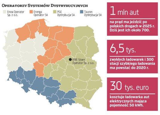 Wcześniej niż w Krakowie i Lublinie, bo już w trzecim kwartale tego roku, pojawi się sześć takich punktów w Łodzi, a także trzy w Rzeszowie. Na razie trudno powiedzieć, które z miast będzie pierwsze. – Stacje do ładowania staną w centrum miasta. Chcielibyśmy, by były zamontowane już w lipcu, bo taksówkarze tworzą korporację wykorzystującą auta na prąd. I zapowiadają zakup 50 pojazdów, z czego 20 już w tym roku – tłumaczy Maciej Chłodnicki, rzecznik prezydenta Rzeszowa.