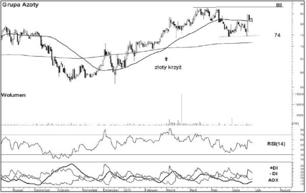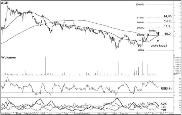 Kurs akcji producenta komponentów samochodowych rośnie od połowy kwietnia. Z perspektywy długoterminowej jest to korekta bessy, ale jej skala i ostatnie sygnały techniczne wskazują, że może to być początek silniejszego trendu wzrostowego. Cena akcji przebiła już 23,6-proc. zniesienie Fibonacciego dla wspomnianej bessy, a w minionym tygodniu na wykresie pojawiła się formacja złotego krzyża (50-sesyjna średnia przebiła od dołu 200-sesyjną). Najbliższy cel zwyżki to 11,8 zł, a potem 13 zł. Wsparciem jest 10,2 zł.