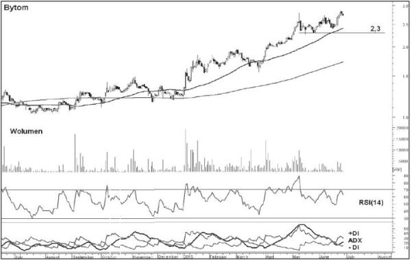Kurs akcji odzieżowej spółki porusza się w długoterminowym trendzie wzrostowym. W minionym tygodniu cena przebiła poprzedni szczyt hossy i wyznaczyła nowy – 2,85 zł. Jest to jednocześnie najwyższy poziom od lipca 2008 r. Nowy rekord należy traktować jako potwierdzenie siły byków i sygnał kontynuacji tendencji zwyżkowej. Jej najbliższym celem pozostaje pułap 3,18 zł. Taki zasięg wyznaczył kilka tygodni temu na łamach „Parkietu" Tomasz Wiśniewski, ekspert Investment University. Wsparciem jest natomiast 2,3 zł.