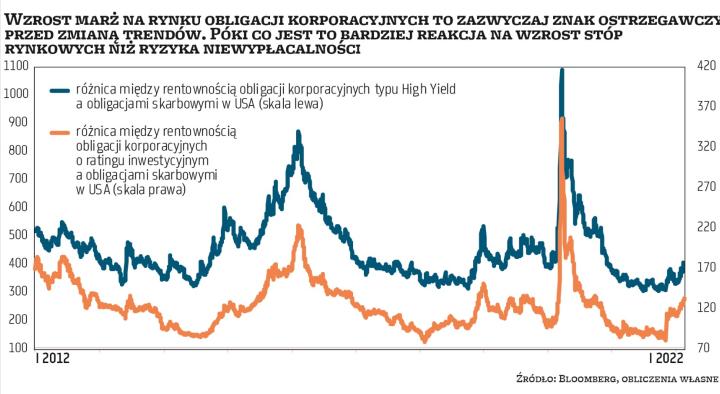 Minęło zaledwie sześć tygodni od zakończenia jednego z najlepszych lat ostatniej dekady na Wall Street, a indeks Nasdaq oddał praktycznie połowę ubiegłorocznych wzrostów, dochodząc do poziomu z lutego 2021 r. DAX jest na poziomie z kwietnia, WIG z czerwca, a indeks S&P 500 w okolicach sierpnia ub.r. Generalnie zachowanie głównych światowych parkietów koresponduje z nieco ezoterycznym, ale mimo wszystko często sprawdzającym się cyklem prezydenckim w USA (słabość w drugim roku prezydentury) czy nawet cyklem dekadowym (drugi rok dekady należy do najsłabszych). Nawet jednak jeśli 2022 r. zakończy się spadkiem giełdowych indeksów, co do niedawna wydawało się większości strategów zupełnie nierealnym scenariuszem, to nie oznacza to, że spadki będą nam towarzyszyły nieprzerwanie od pierwszej do ostatniej sesji tego roku. Nawet po pęknięciu bańki spekulacyjnej dot-comów, gdy indeks Nasdaq w ciągu dwóch miesięcy tąpnął o 40 proc., w kolejnych kilku miesiącach urósł o 40 proc., odrabiając dwie trzecie przeceny. Dopóki głównych przyczyn ostatnich spadków szuka się nie w nadchodzącej słabości gospodarek czy zapowiedzi pogorszenia się wyników firm, ale raczej w szybszym i bardziej znaczącym, niż oczekiwano, zacieśnieniu polityki monetarnej przez banki centralne, to moim zdaniem hossa na giełdach nie powiedziała jeszcze ostatniego słowa.