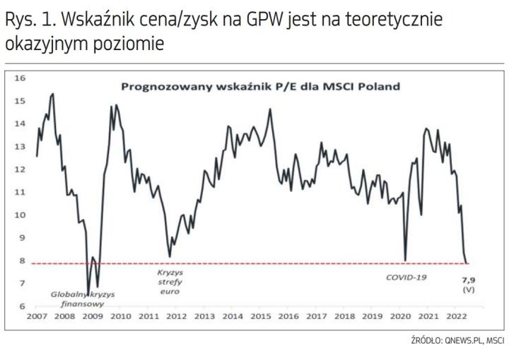Trudno byłoby zakładać, że taki scenariusz jest już uwzględniony w cenach polskich akcji. Wizja ta oznaczać by musiała mocne ścięcie zysków spółek. Pojawia się zatem ryzyko, że obecne prognozy analityków, na których bazuje wspomniany wskaźnik P/E, są zbyt optymistyczne względem tego, co mogłoby się z nimi wydarzyć w przypadku ostrego hamowania koniunktury.