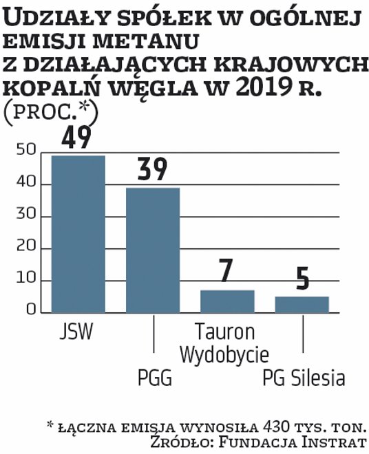 Największym krajowym emitentem metanu pochodzącego z kopalń węgla kamiennego jest JSW. Spółka podaje, że wszystkie jej zakłady prowadzą w tym zakresie monitoring. W 2021 r. wyemitowały 299,81 mln m sześc. metanu, czyli o 23 mln m sześc. więcej niż w 2020 r. Ile będzie w tym roku? – O wielkości emisji decyduje metanonośność eksploatowanych pokładów. Rocznie w kopalniach JSW wydziela się około 400 mln m sześc. metanu, z czego około 40 proc. ujmowane jest systemem odmetanowania – informuje Tomasz Siemieniec, kierownik zespołu komunikacji JSW. W tym roku spółka planuje rozpocząć program, który zakłada zwiększenie efektywności odmetanowania do 50 proc. Tym samym po jego zakończeniu emisja spadnie do około 200 mln m sześc. Spółka przekonuje, że dalsza redukcja na tę chwilę jest technicznie niemożliwa.