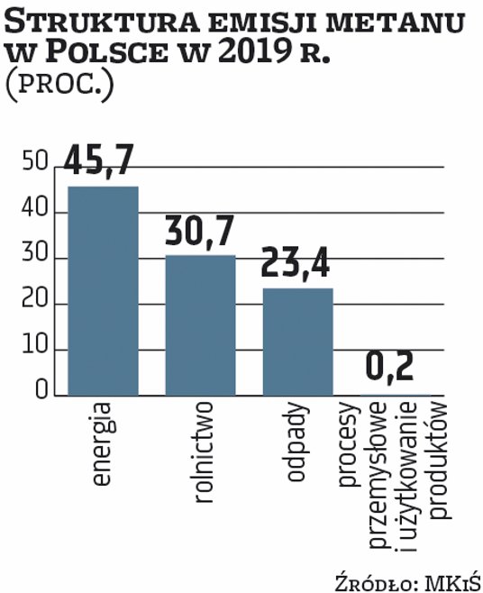 Obecnie w atmosferze jest ponaddwukrotnie więcej metanu, niż miało to miejsce przed epoką przemysłową, czyli przed 1760 r. To bardzo dużo, zważywszy, że jest to gaz silniej oddziałujący na klimat niż CO2, gdyż ma od niego 86 razy większą zdolność do pochłaniania promieniowania cieplnego. Ponadto ostatnie badania, przeprowadzone przez Environmental Defense Fund (EDF), wskazują, że emisje metanu wywoływane przez działalność człowieka odpowiadają za około 30 proc. globalnego ocieplenia. Z kolei z danych Międzynarodowej Agencji Energetycznej (MAE) wynika, że wycieki metanu z kopalń mają większy wpływ na globalne zmiany klimatu niż lotnictwo i transport morski razem wzięte. MAE wskazuje też, że polskie kopalnie węgla należą do największych emitentów tego gazu na świecie. Eksperci Ember w jednym z raportów precyzują, że 70 proc. wycieków metanu z czynnych kopalń węgla w Europie miało miejsce w Polsce. To jednak tylko fragment dużo większej całości. Nad Wisłą udokumentowane emisje metanu w największym stopniu pochodzą z szeroko rozumianej energetyki, a konkretnie z działalności związanej z wydobyciem, transportem i konsumpcją paliw kopalnych. To nie tylko węgiel, ale i gaz ziemny oraz ropa. Duży udział ma też produkcja rolna i gospodarka odpadami.