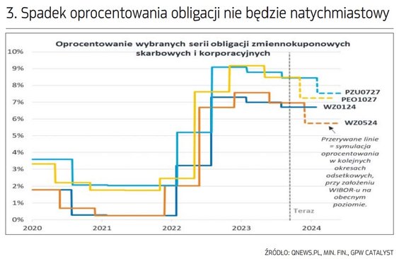 Na przestrzeni lat 2021–2022 wielokrotnie zwracaliśmy uwagę, że licznie reprezentowane grono obligacji skarbowych i korporacyjnych o zmiennym oprocentowaniu (kuponie) będzie najbardziej oczywistym beneficjentem skokowych podwyżek stóp procentowych przez Radę Polityki Pieniężnej.