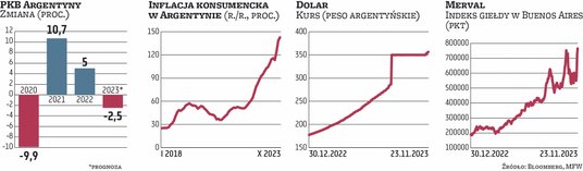 Milei przejmie wkrótce władzę nad krajem, który jest pogrążony w głębokim kryzysie. Inflacja konsumencka sięgała w październiku w Argentynie 142,7 proc., a główna stopa procentowa 133 proc. Międzynarodowy Fundusz Walutowy prognozuje, że argentyński PKB spadnie w tym roku o 2,5 proc., a odsetek ubogich mieszkańców przekracza 40 proc. Nad krajem wisi też ryzyko kolejnego bankructwa, gdyż dotychczasowy rząd nie potrafił porozumieć się z MFW w sprawie dalszych losów wartego 43 mld USD programu pomocy. Nie wiadomo, co zrobi w tej sprawie Milei. Zapowiadał jednak wielokrotnie, że kwestię inflacji rozwiąże w sposób radykalny: porzucając peso i przyjmując dolara amerykańskiego jako środek płatniczy.