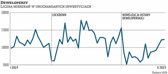 W październiku deweloperzy rozpoczęli budowę 12,3 tys. mieszkań, o 0,6 proc. więcej niż we wrześniu, co oznacza, że drugi miesiąc z rzędu działali już na poziomie typowym dla dobrej koniunktury. Inwestycyjna machina w poprzednich miesiącach rozkręcała się bardzo powoli wbrew rozgrzanemu popytowi.
