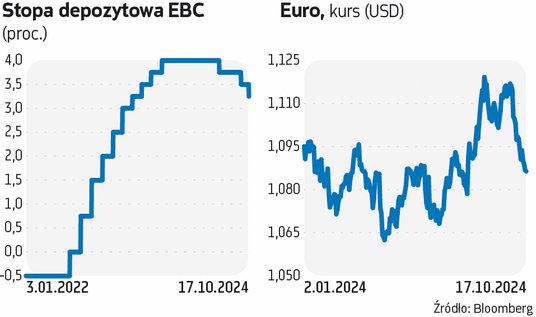 „Rynek prognozuje dalsze spadki stóp procentowych z oczekiwaniem, że poziom 2 proc. zostanie osiągnięty do końca 2025 roku. Decyzja EBC ma na celu wsparcie spowalniającej gospodarki strefy euro, w której ostatnie dane makroekonomiczne, zwłaszcza z Niemiec i Francji, wskazują na pogarszające się wskaźniki PMI oraz dalszy spadek inflacji, która we wrześniu wyniosła 1,7 proc. r./r., co sugeruje możliwość dalszego łagodzenia polityki pieniężnej” – uważają analitycy platformy inwestycyjnej Portu.