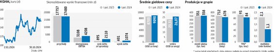 Jakub Szkopek, analityk Erste Securities Polska, szacuje, że w III kwartale grupa KGHM wypracowała 1,83 mld zł skorygowanej EBITDA. To wynik lepszy od zanotowanego w tym samym okresie ubiegłego roku (wówczas wyniósł 1,17 mld zł), ale słabszy od osiągniętego w II kwartale tego roku (2,66 mld zł). – W III kwartale negatywny wpływ na wyniki finansowe grupy KGHM miały spadające ceny miedzi oraz postoje remontowe w Hucie Miedzi Głogów i Wydziale Metali Szlachetnych. Z drugiej strony mieliśmy do czynienia z wysokimi notowaniami srebra i złota oraz coraz lepszą efektywnością aktywów zagranicznych, w tym zwłaszcza amerykańskiej kopalni Robinson – mówi Szkopek. Jego zdaniem również w końcówce roku metale szlachetne i aktywa zagraniczne powinny się przyczyniać do poprawy wyników grupy.
