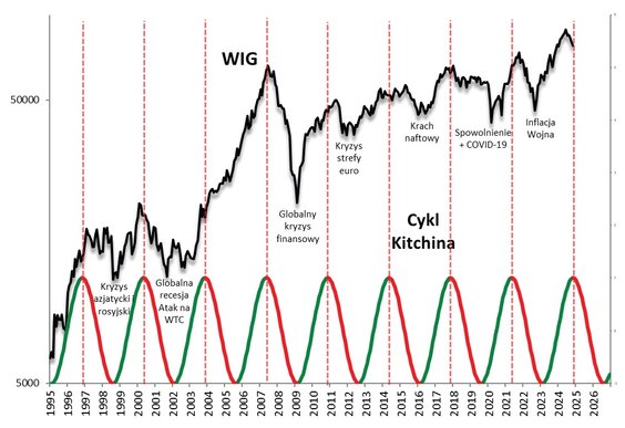 Czas najwyższy, by odświeżyć nasze tradycyjne rozważania na temat tzw. cyklu Kitchina na GPW, czyli cyklu składającego z ok. 20-miesięcznych (w praktyce średnio raczej 21-mies.) faz wzrostowych i spadkowych.