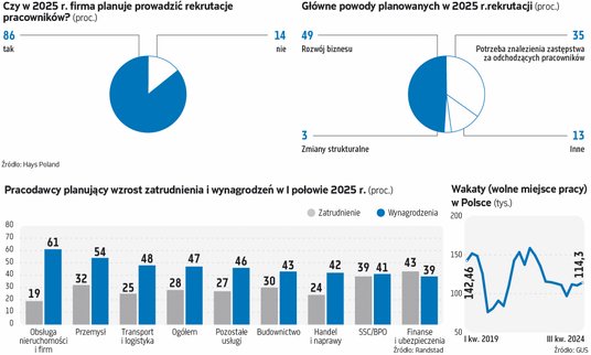 Ten pozytywny sygnał jest najsilniejszy w sektorze finansów i ubezpieczeń, bo tam najwięcej (43 proc. firm badanych przez Randstad) planuje wzrost zatrudnienia w I półroczu 2025 r. Na drugim miejscu są nowoczesne usługi dla biznesu (39 proc.), w których duży udział mają usługi IT.